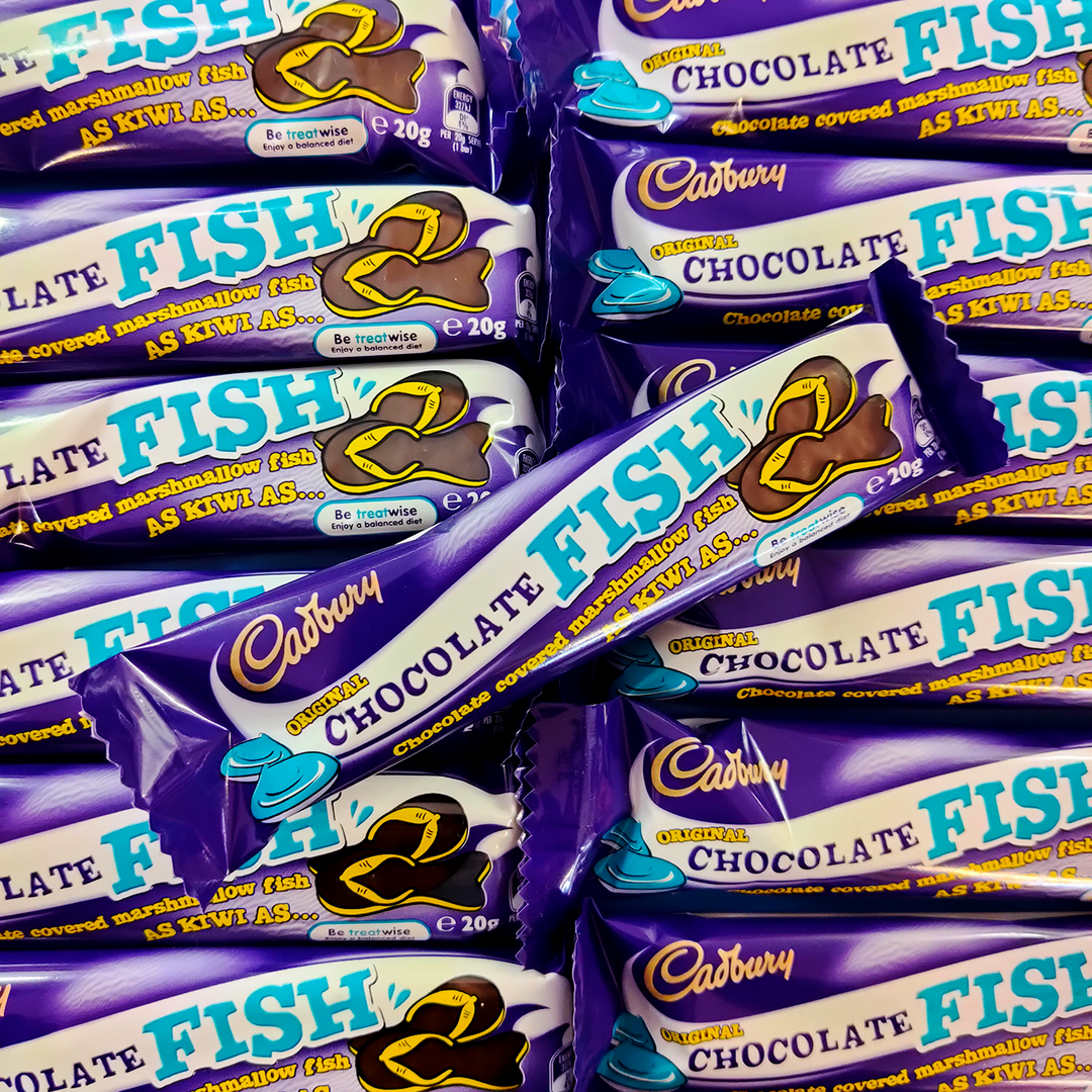 Cadbury’s chocolate fish are a popular kiwi favourite. With a strawberry marshmallow centre and coated in Cadbury dark chocolate these are a great treat. Individually wrapped these are ideal for sharing, giveaways etc.Â
