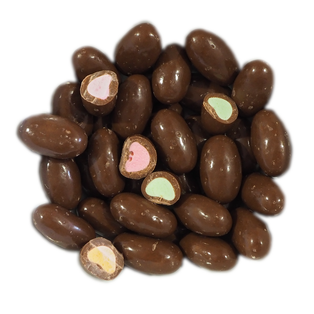 Chocolate coated crunchy fruit filling in four flavours: Strawberry; Lime; Orange & Banana