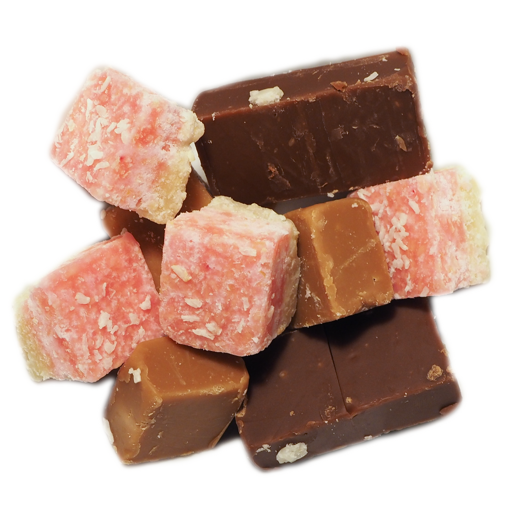 In case you cant choose we mix them for you. Chunks of Irish Cream Fudge, Chocolate Fudge, Russian Fudge and Coconut Ice…Delicious