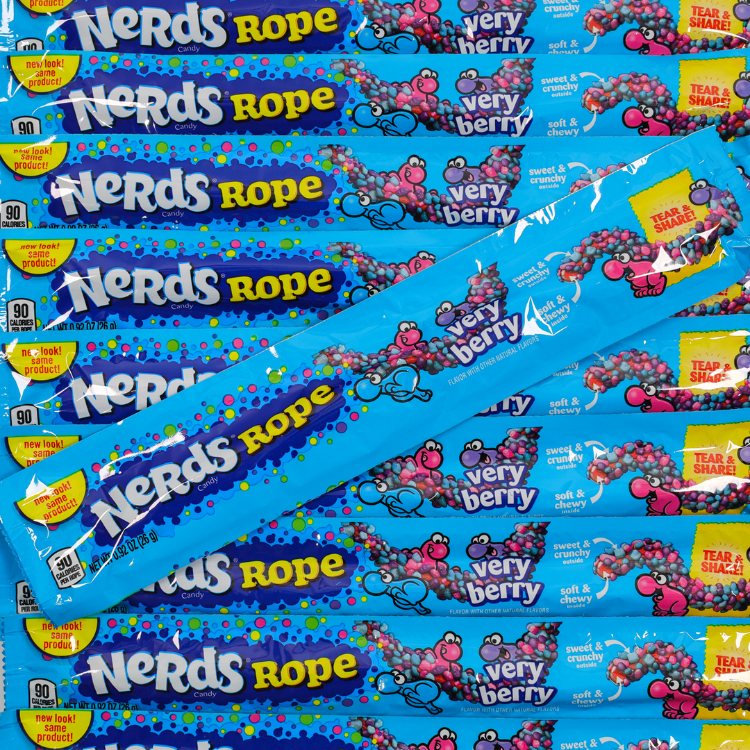 Very Berry Nerds on a chewy, fruity string. Those sweet little sparks, all together they swing. A tasty rope, packed with crunchy sweet nerds. A cady so tasty, there arent even words.
