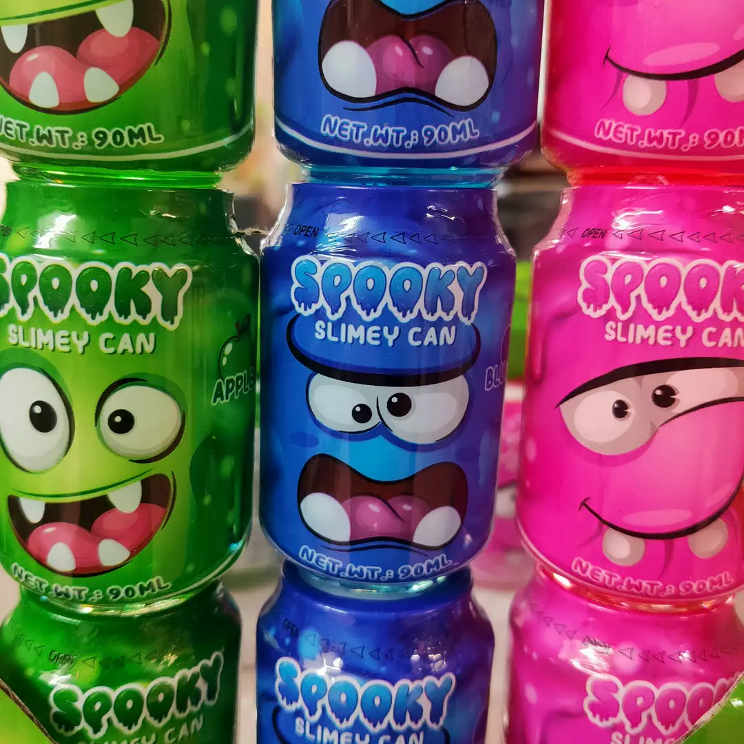 Spooky Slimey Cans of flavour. Use a straw to blow bubgles or dip your fingers in. 3 flavours: Apple, Blueberry, Strawberry. Great for Halloween but fun for everyday.