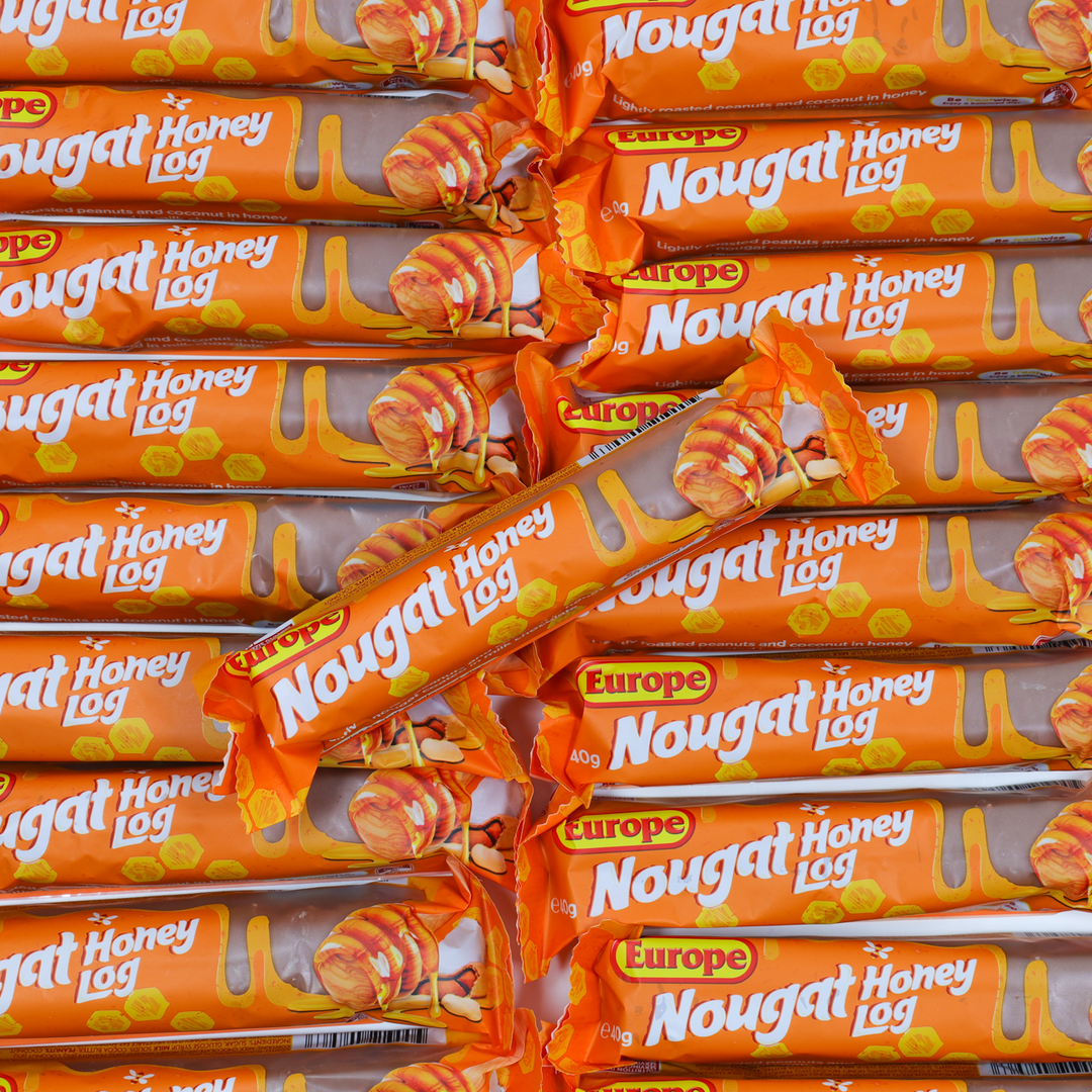 Another classic log from Australia. Lightly roasted peanuts and coconut in honey nougat coated in milk chocolate. Delicious!!