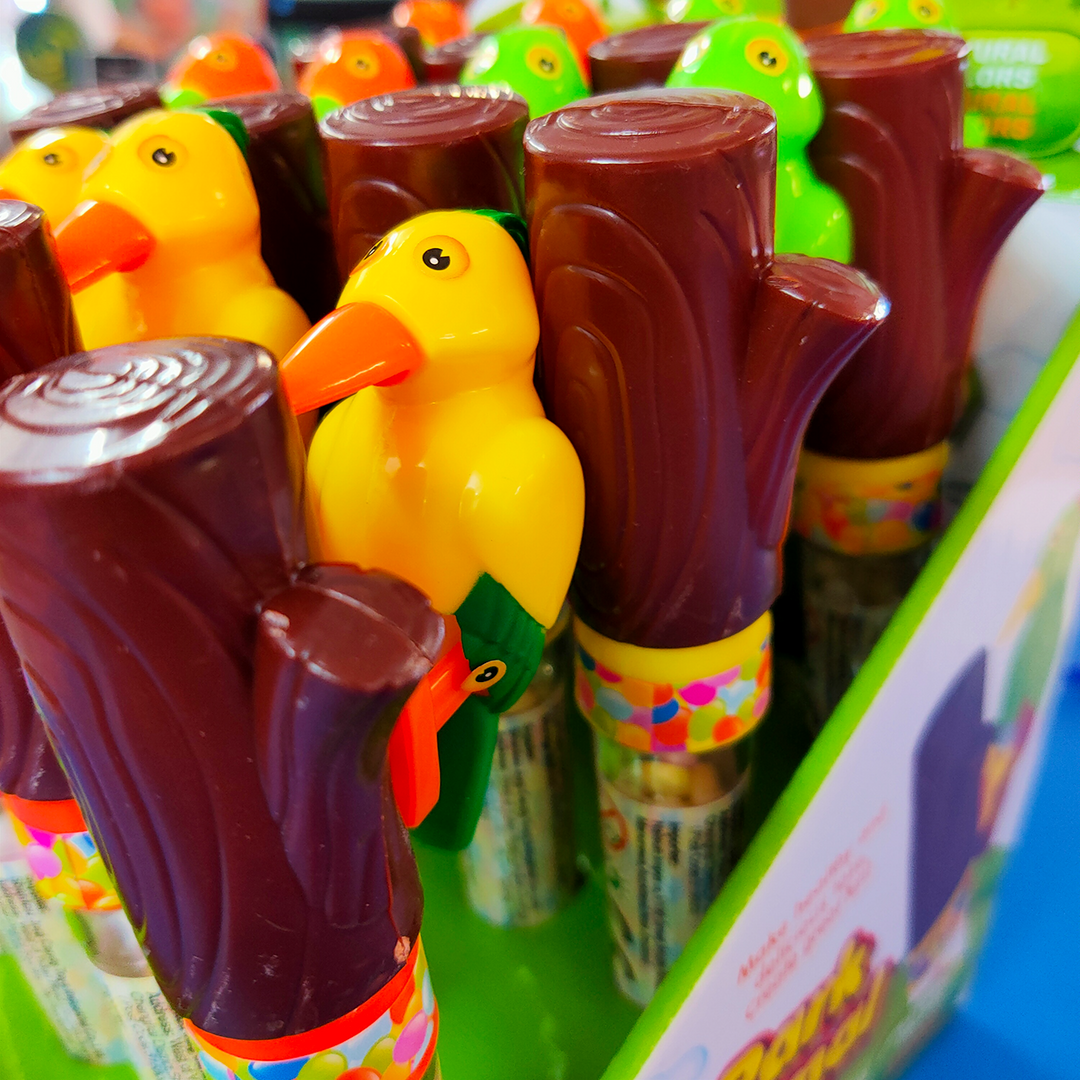 Turn the chain the twist clockwise and watch the woodpecker do his job. This is a fun toy that has the added bonus of candy. The team have had so much fun with this awesome treat